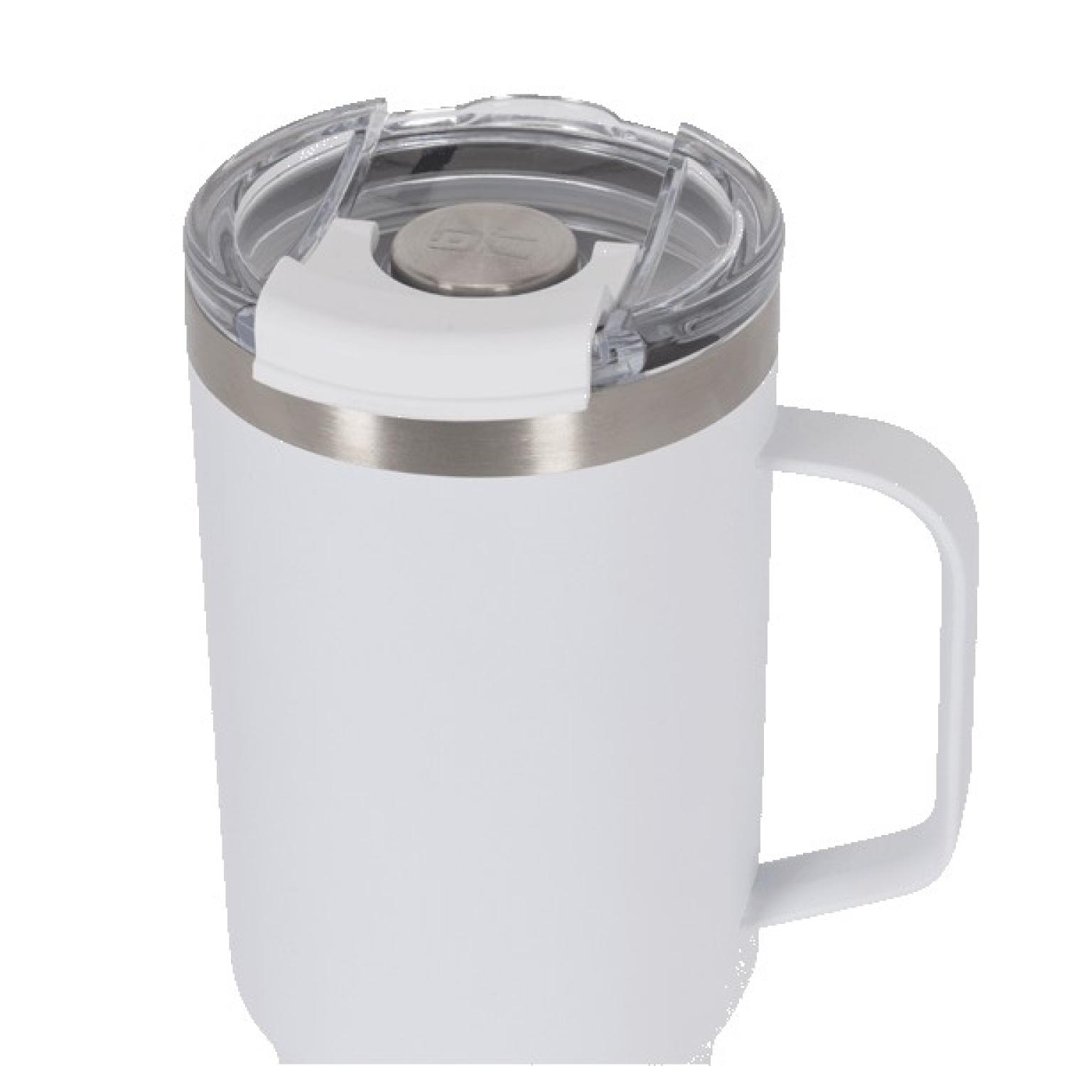 This mug is crafted with stainless steel vacuum insulation, it keeps drinks hot or cold for hours. The stainless steel handle ensures easy carrying, while the Tritan™ lid with a flip cover allows spill-free sipping. The sleek design boasts a stainless steel lid decoration and the iconic BC logo on a round emblem. This item is not microwave safe. We are proud to partner with Wounded Warrior Project® and will be donating 1% of the Basecamp® sales to support their mission. 5.31″ W x 4.09″ L x 9.65″ H