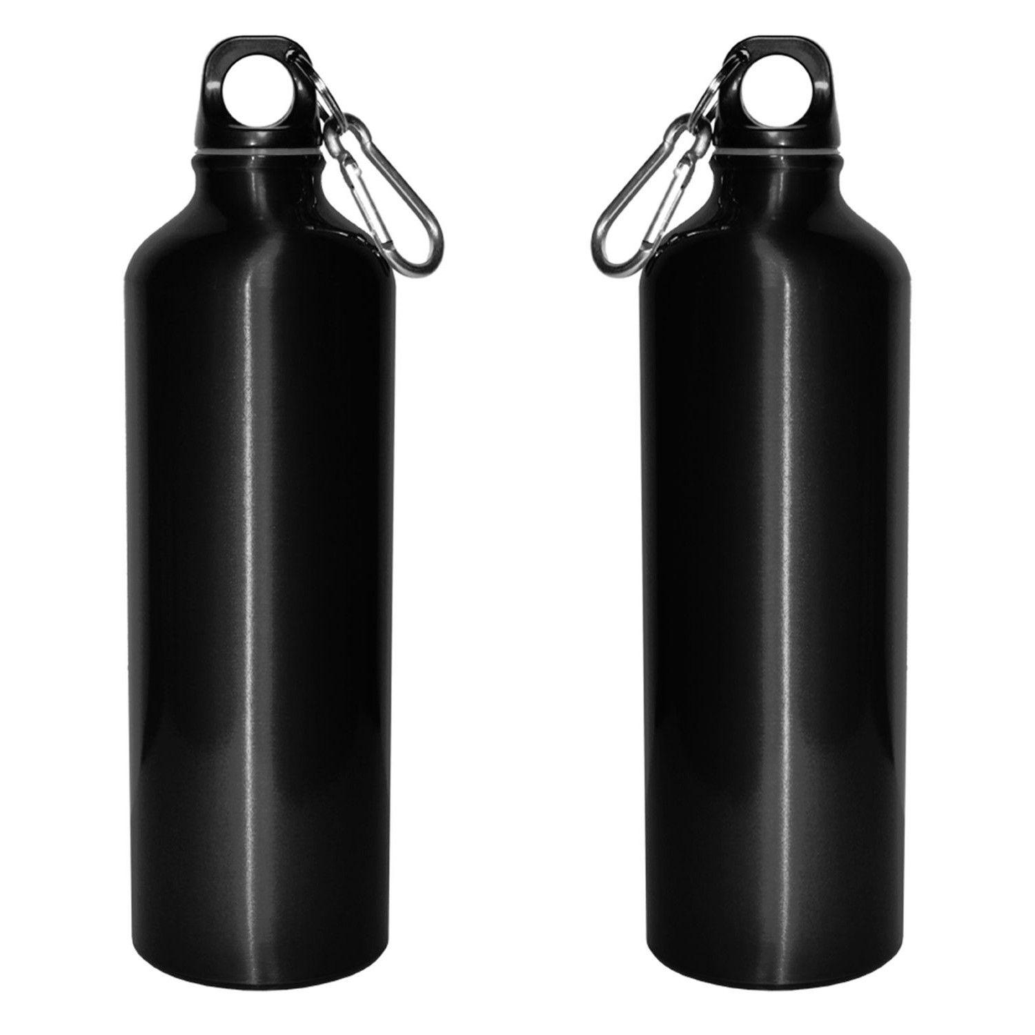 Dempsey 28 oz. Aluminum Bottle. Size: 9 3/4 H x 2 3/4 Diameter. BPA free lining. Fits most drink holders. Free assembly. Twist off finger-loop cap and carabiner. Same color, second side or wrap imprint at no additional charge. 100% recyclable reusable. Black only with silver carabiner. 2.75″ W x 9.75″ H x 2.75″ D