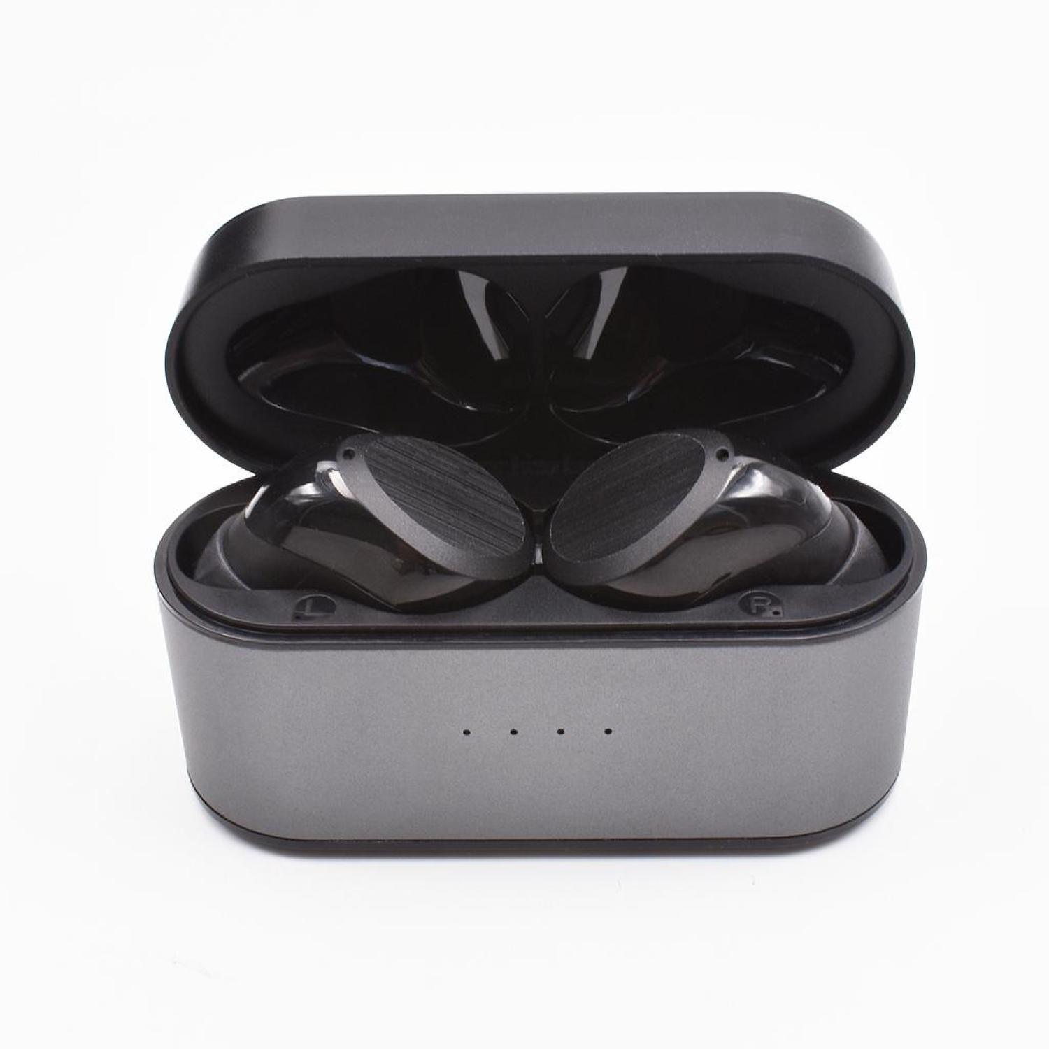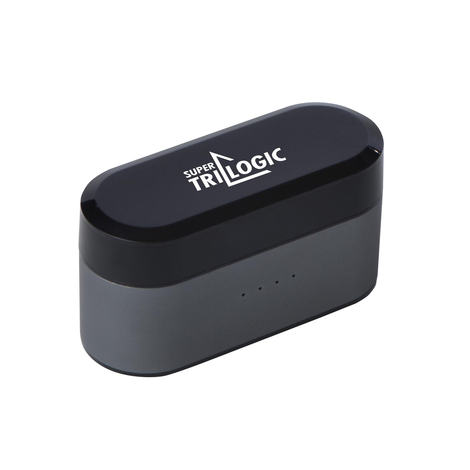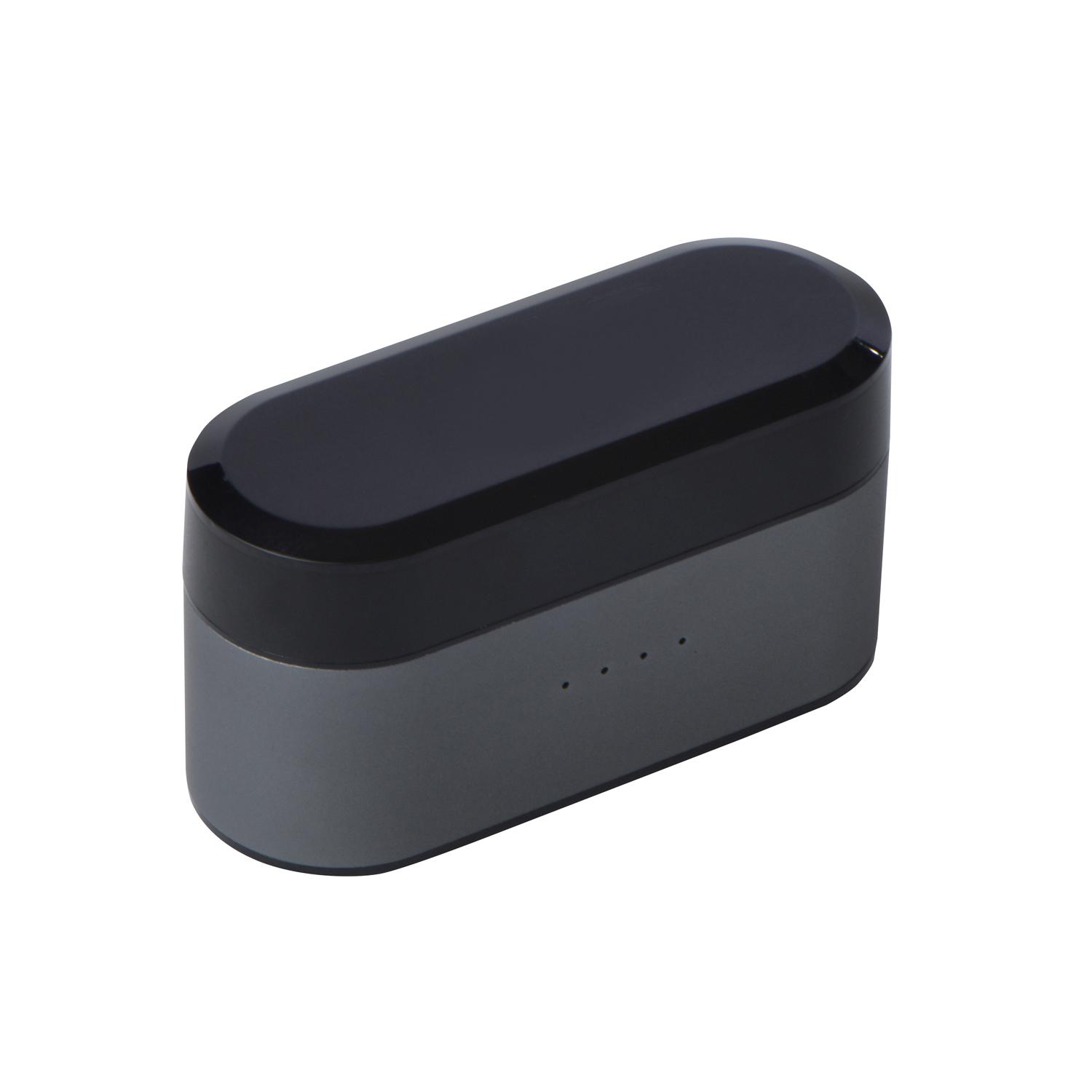 Great looks and great sound. These true wireless, noise cancelling ear buds have a built-in CVC 6.0 for outside noise reduction, can play up to 4 hours, built-in microphone, and comes with a 1000mAh power charging case. 2.5″ W x 1.3125″ H x 1.0″ D