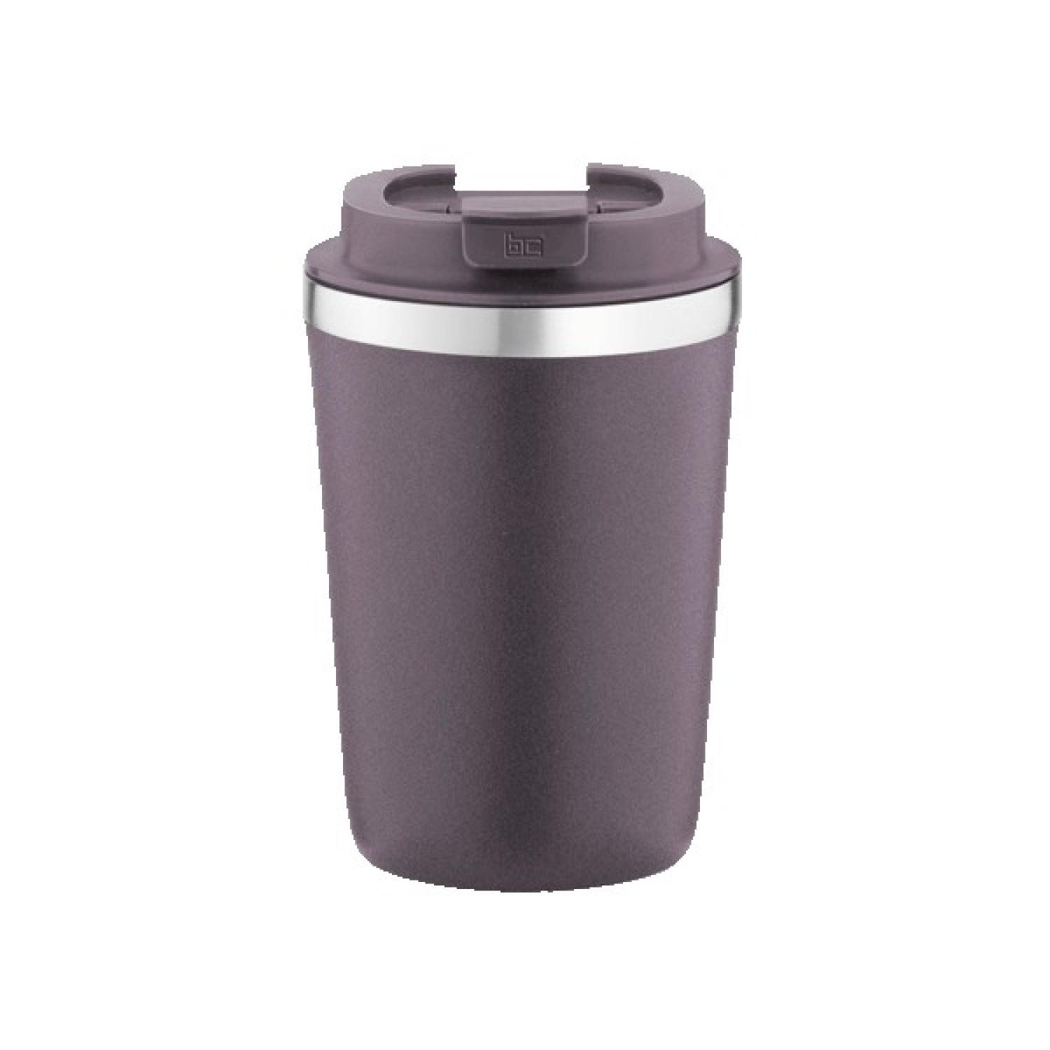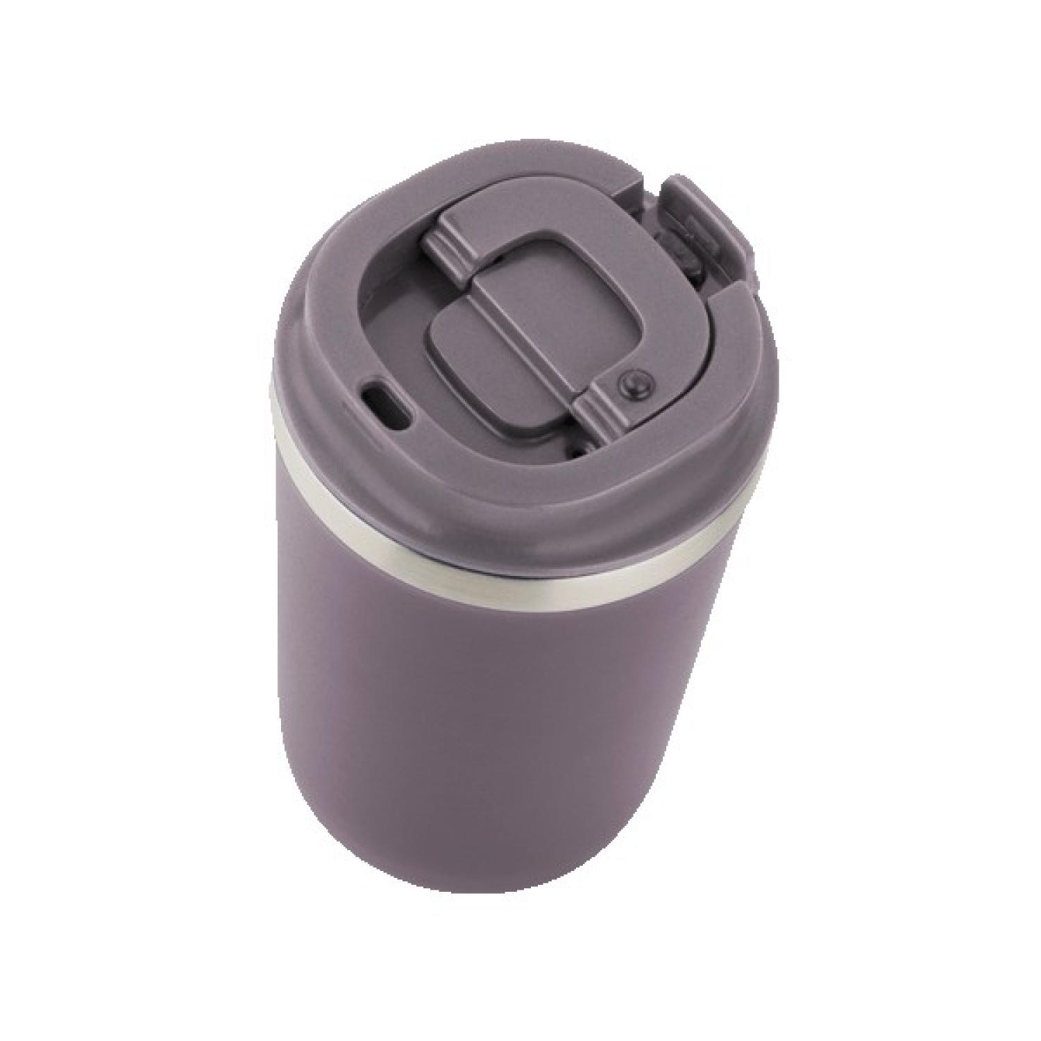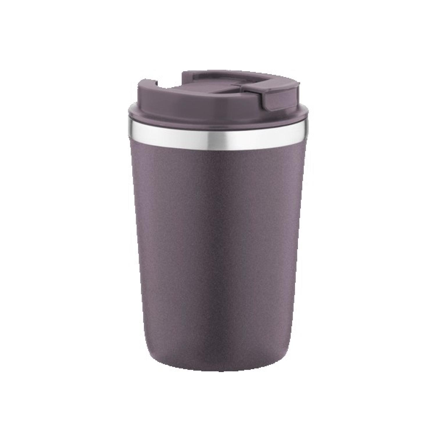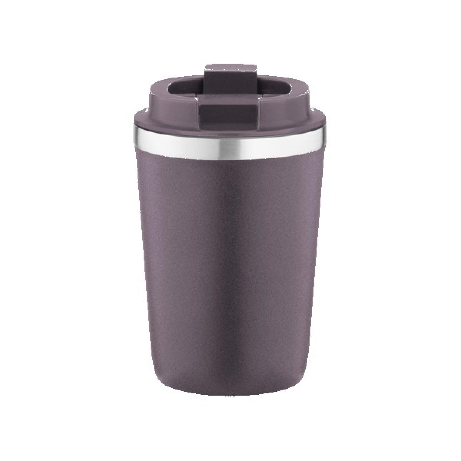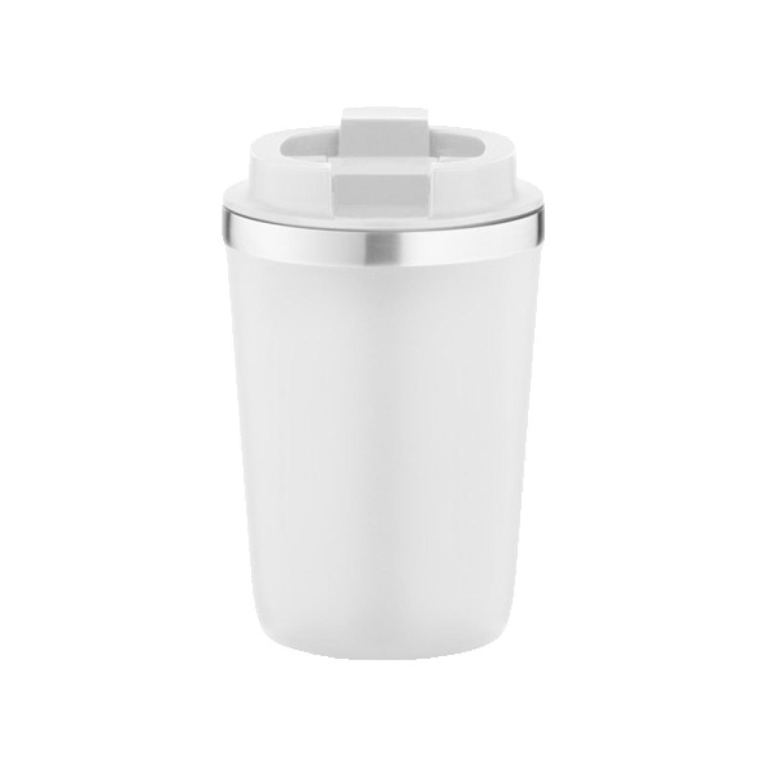 12 Oz. Vacuum insulated double wall coffee mug with a flip up lid. Powder coated 18/8 stainless steel with copper lining; screw on, leak proof open lock lid. Keeps contents cold for 24 hours or hot for 12 hours. Not microwave safe; hand wash only; BPA free. Packaged in a retail box. 5.5″ H x 3.5″ W