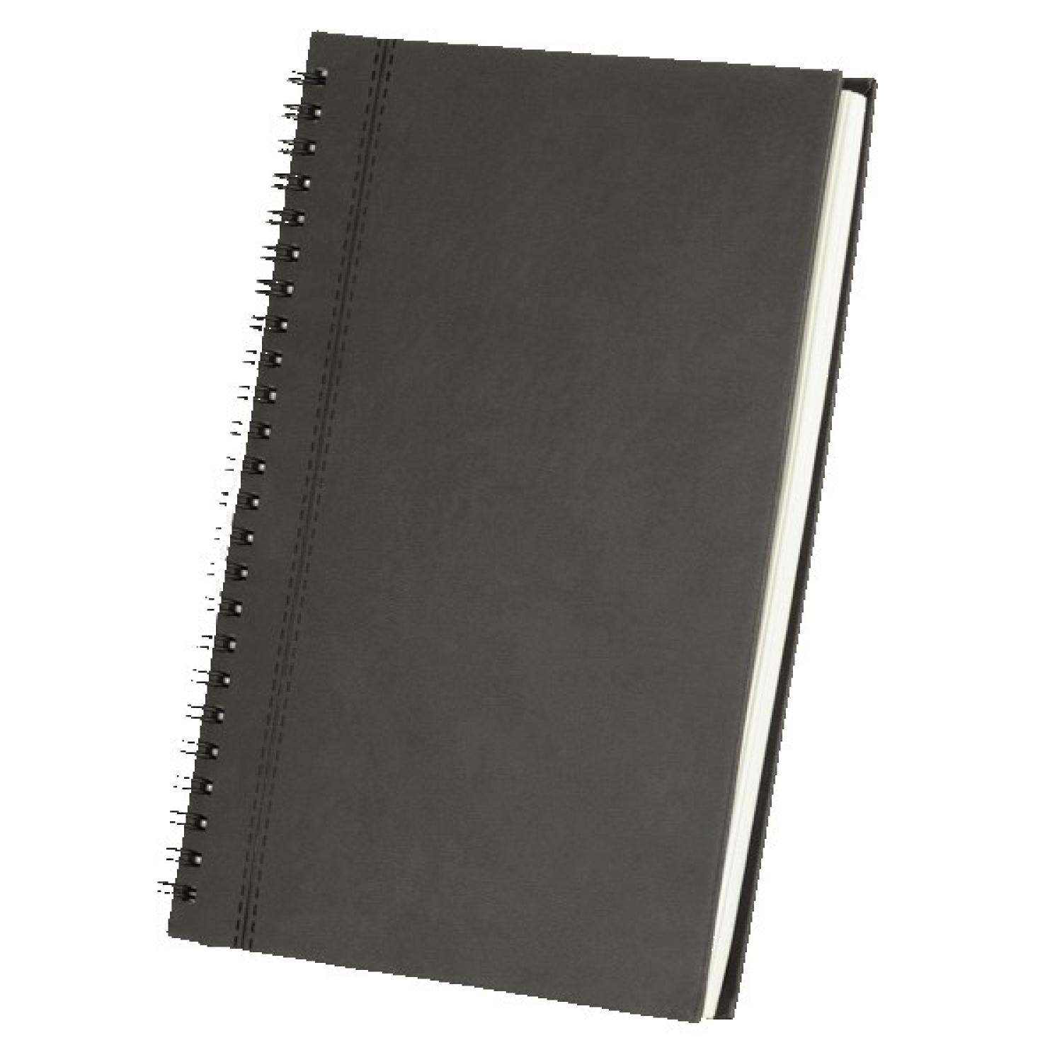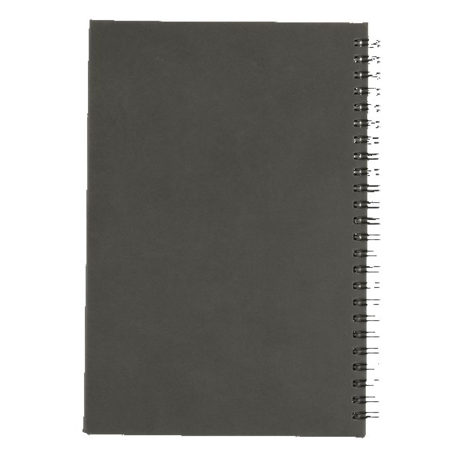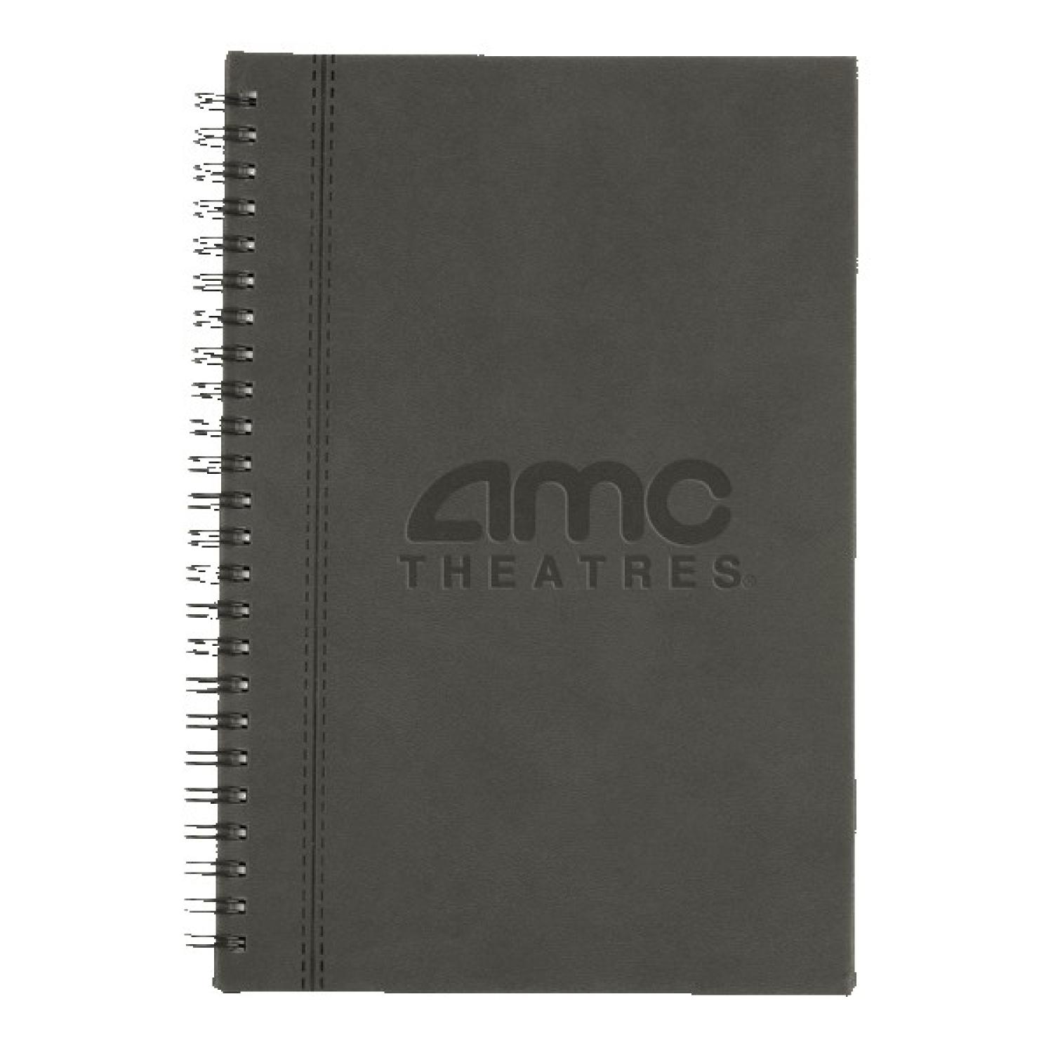 Spiral bound 100 ivory sheet lined notebook; soft touch PU cover with front stitch detail. 8.5″ H x 6″ W