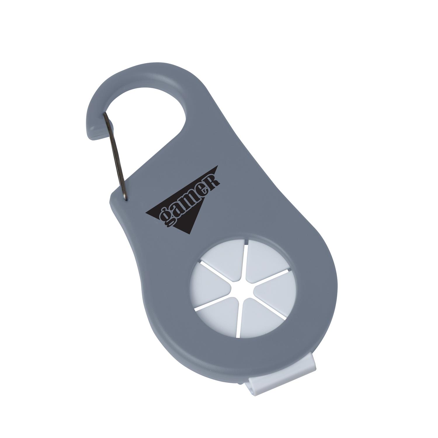 You can hang a water bottle from this useful clip, and even hang a towel from it for those trips to the gym or other exercise. D-ring design enables it to be clipped to many different objects. 2.1875″ W x 4.125″ H x 0.625″ D