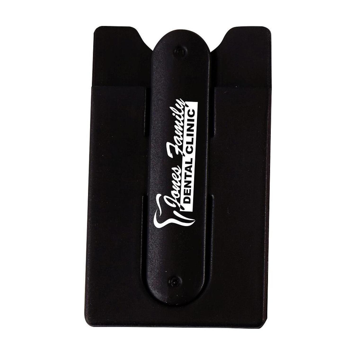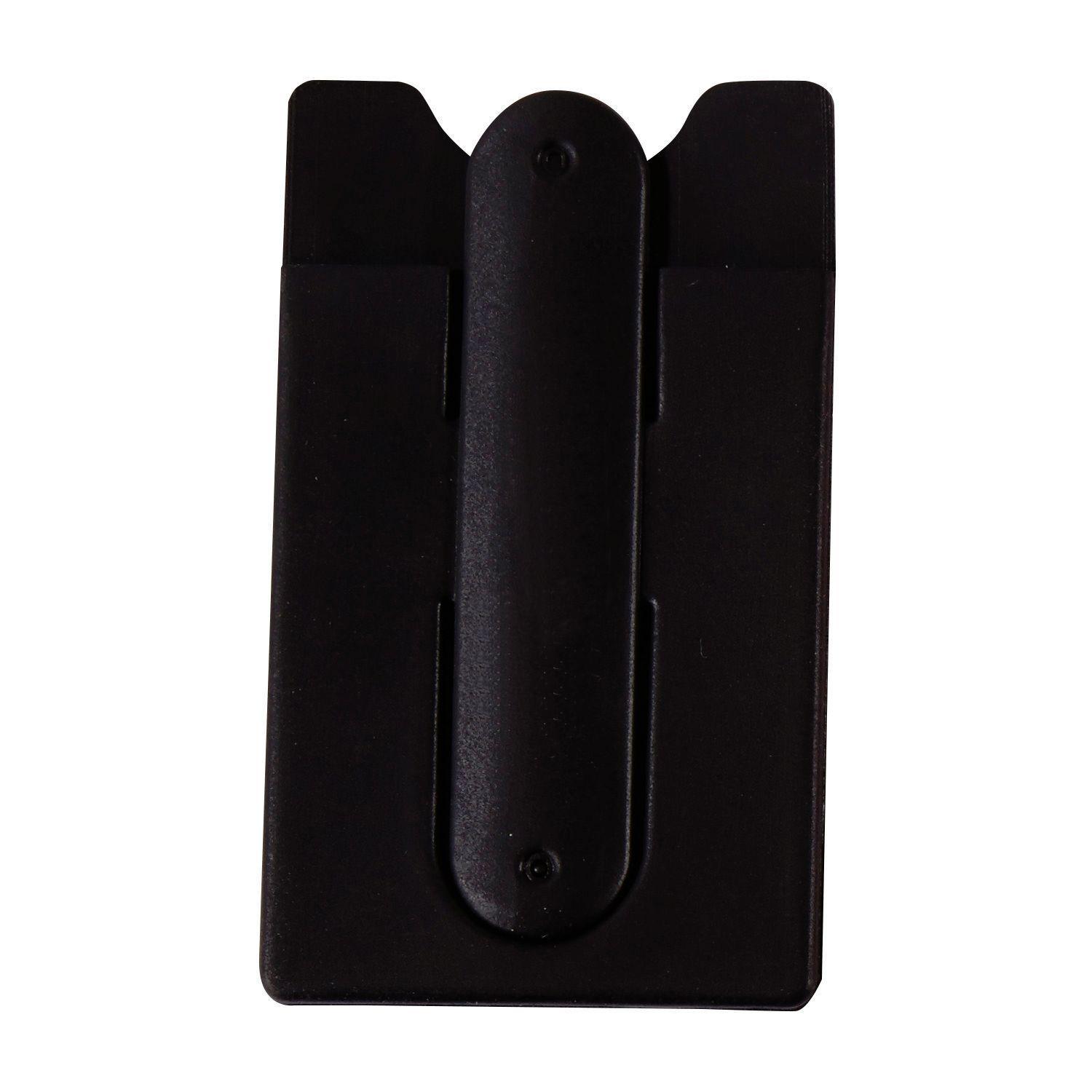 This thin and lightweight item can be used as a phone stand and as a wallet. Ideal for credit cards, hotel room keys, identification, or cash. Features adhesive backing that attaches to the back of the phone. 2.125″ W x 3.75″ H x 0.01″ D