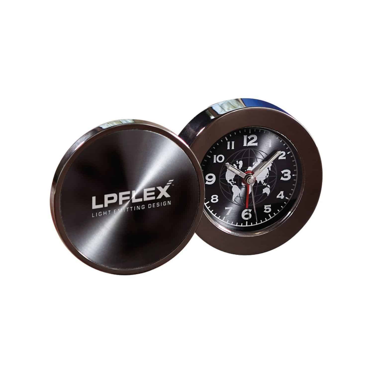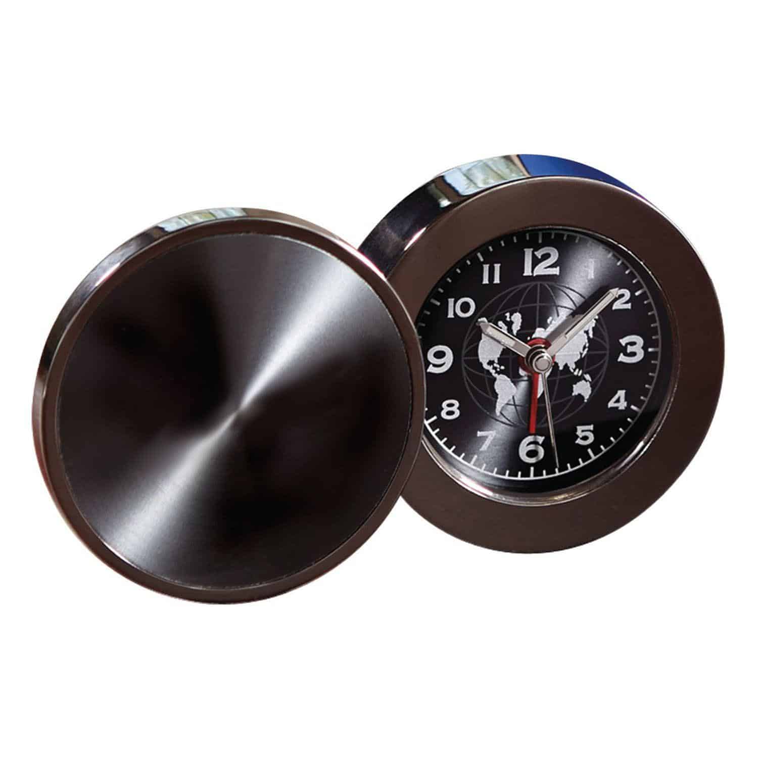 Whether on the desk, or on the go, this beautiful timepiece never looks out of place. 2.0″ W x 2.0″ H x 0.875″ D