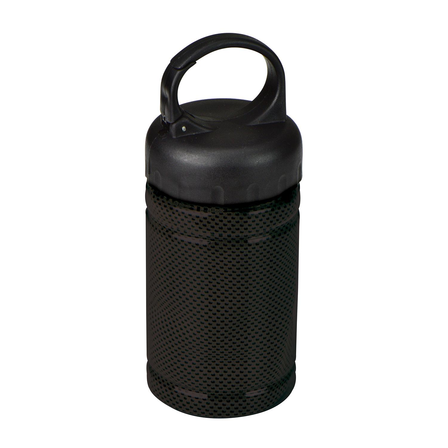 Great for the gym or outdoor activities. Wet the towel and wrap around your neck to cool down during workout sessions. Plastic bottle comes as a convenient carrying case and storage facility. Towel size is 32 x 12. 2.5″ W x 6.5″ H x 2.5″ D