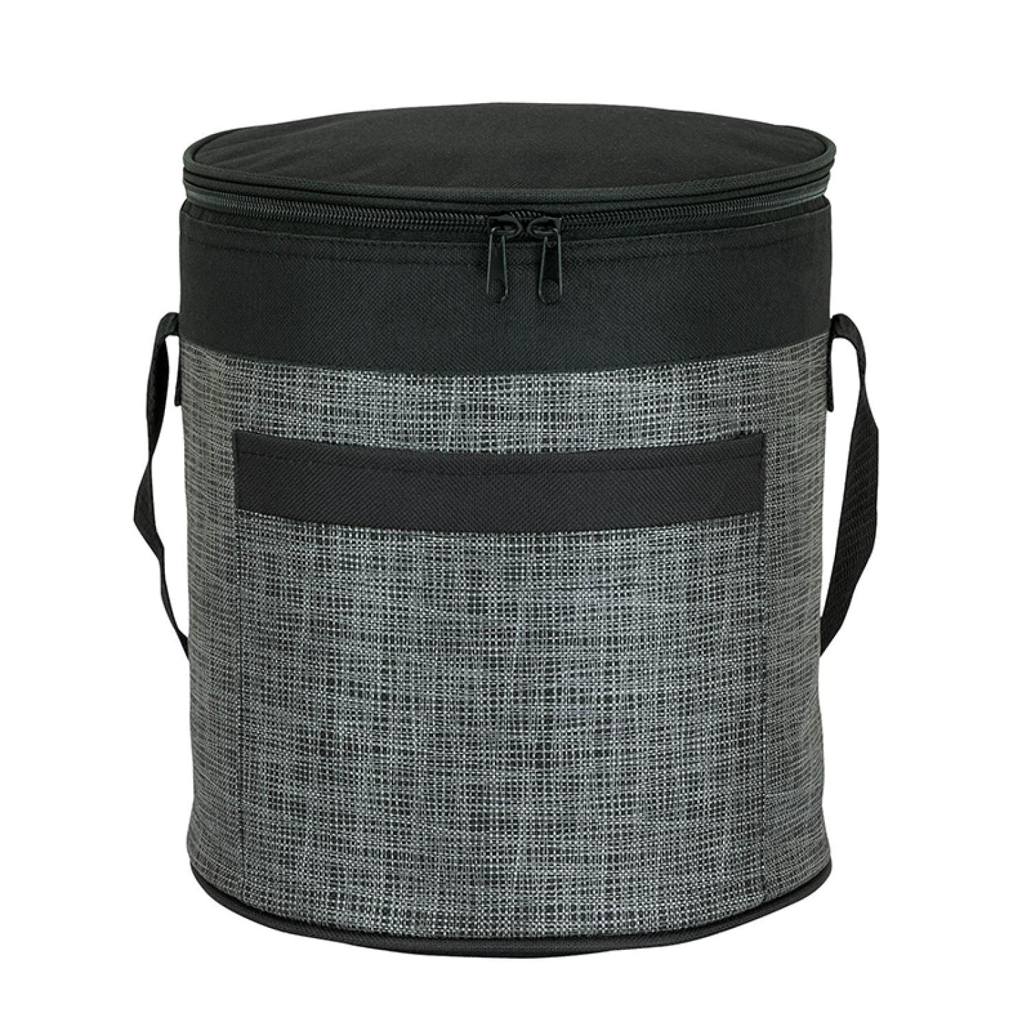 The Impress printed barrel cooler with 1″ x 19 1/2″ carry strap is just the thing you need to keep your drinks cold while attending that next sporting event in style. Made from 80gsm non-woven polypropylene and featuring 14-can zippered foil lined main compartment, you’ll also find an exterior pocket just large enough for napkins. The black and grey exterior print brings just enough style to keep you looking just as cool as the cans inside. Folds flat for easy storage. Complies with Prop 65. 9″ W x 10″ H x 9″ D
