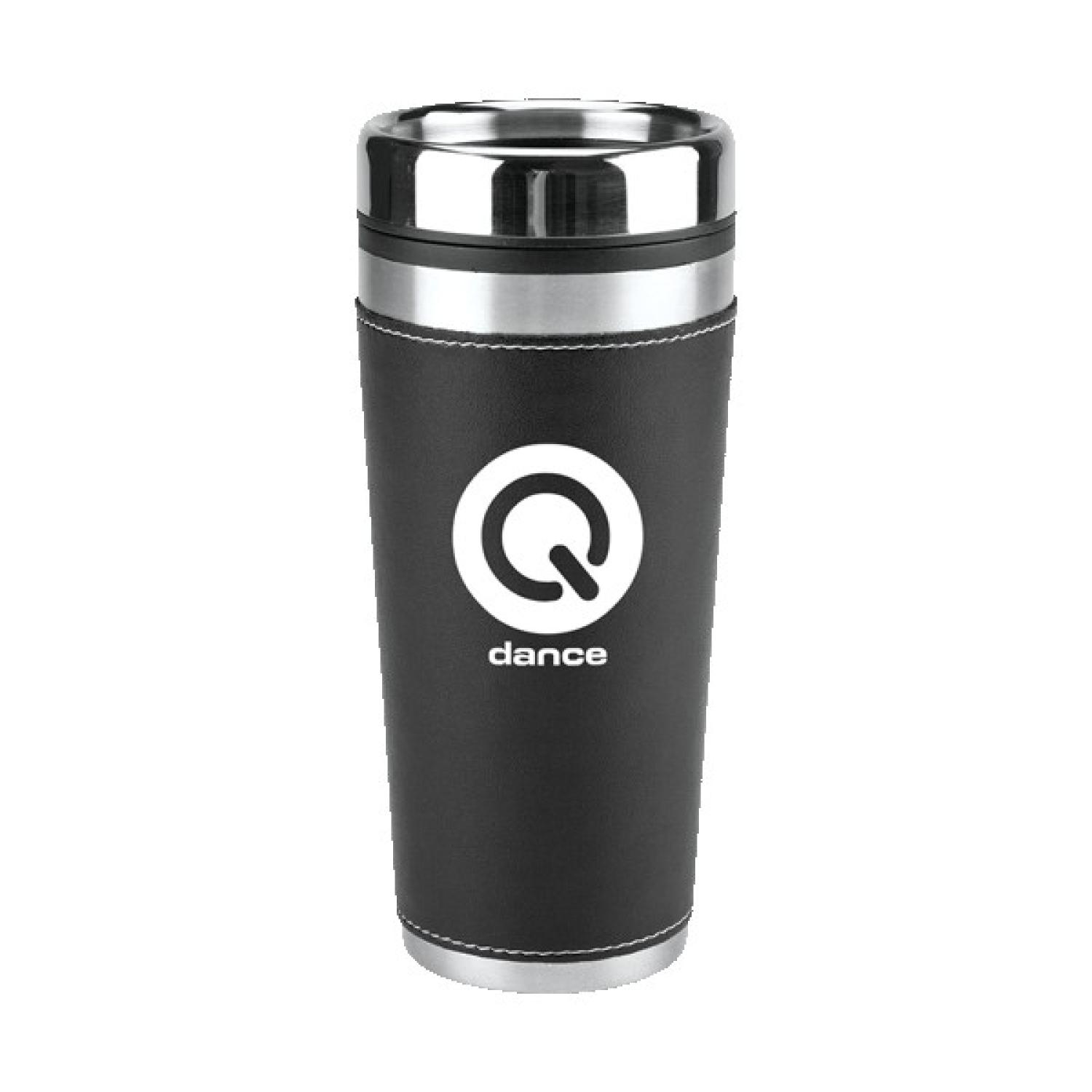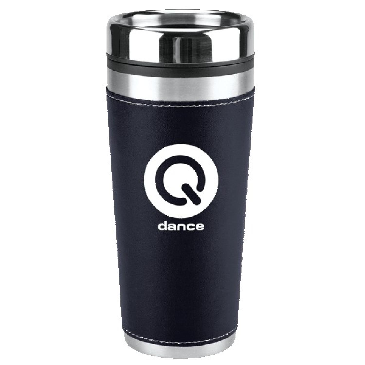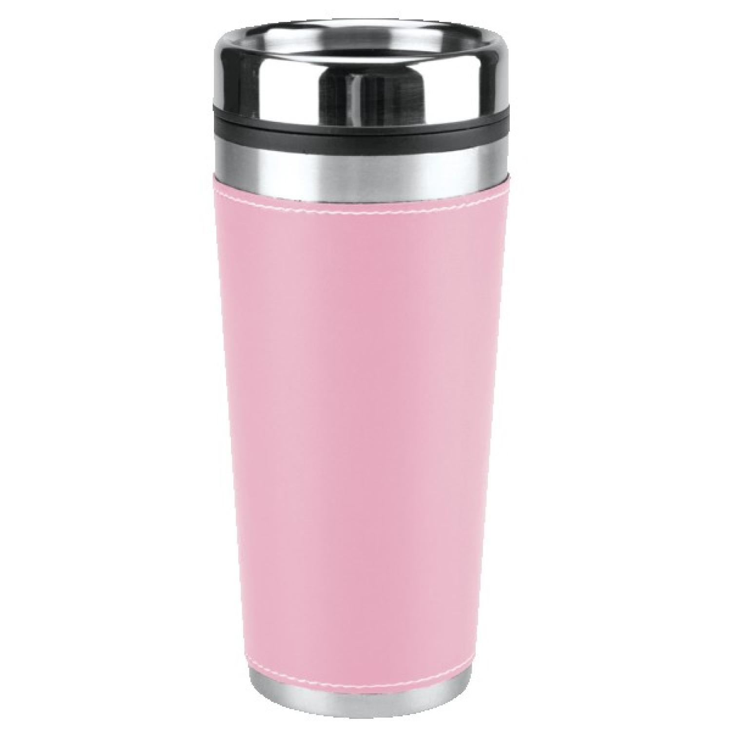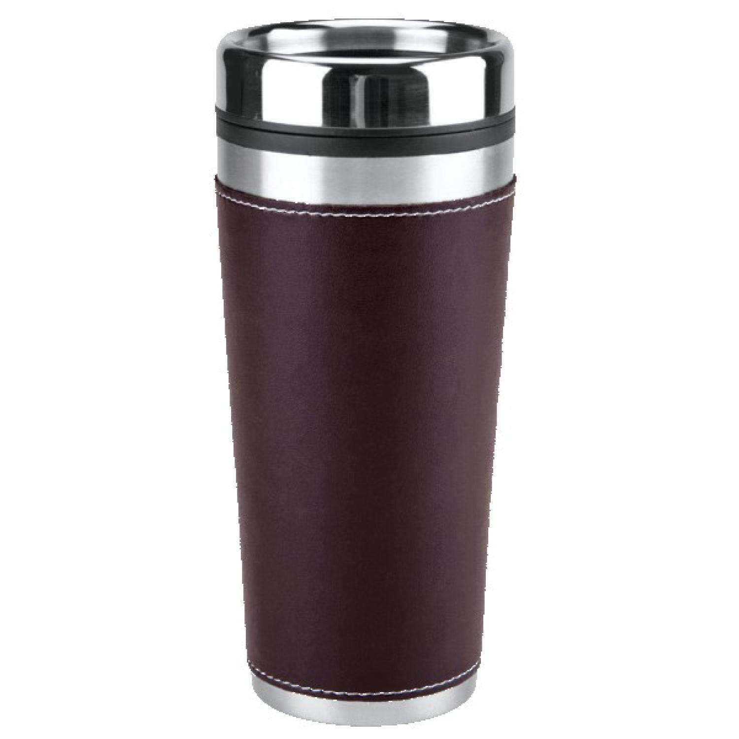 16 Oz. Stainless steel outer wall with plastic liner; full PVC sleeve with white stitching; double wall insulation; stainless steel lid with slide lock prevents spills. Non-slip bottom. Not microwave or dishwasher safe. Complies with FDA. 8″ H x 3.125″ W