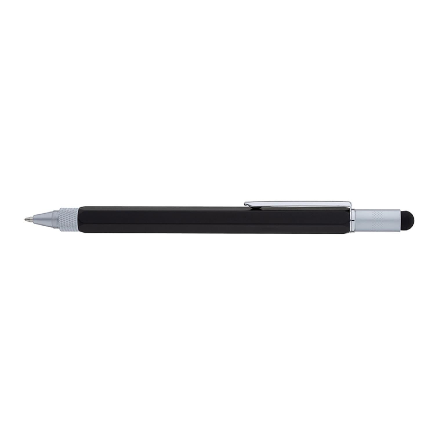 The Rockport 5-in-1 Multifunction Pen is a six-sided twist-action weighted aluminum ballpoint with textured grip and a pocket clip. It features a spirit level, 4″/10cm ruler, small reversible Phillips and flathead screwdriver bit and a capacitive stylus that works with touch screen devices. The Rockport is a great gift for engineers and tech-minded customers and employees. Complies with Prop 65. 1/2″ W x 6 1/8″ H x 7/16″ D
