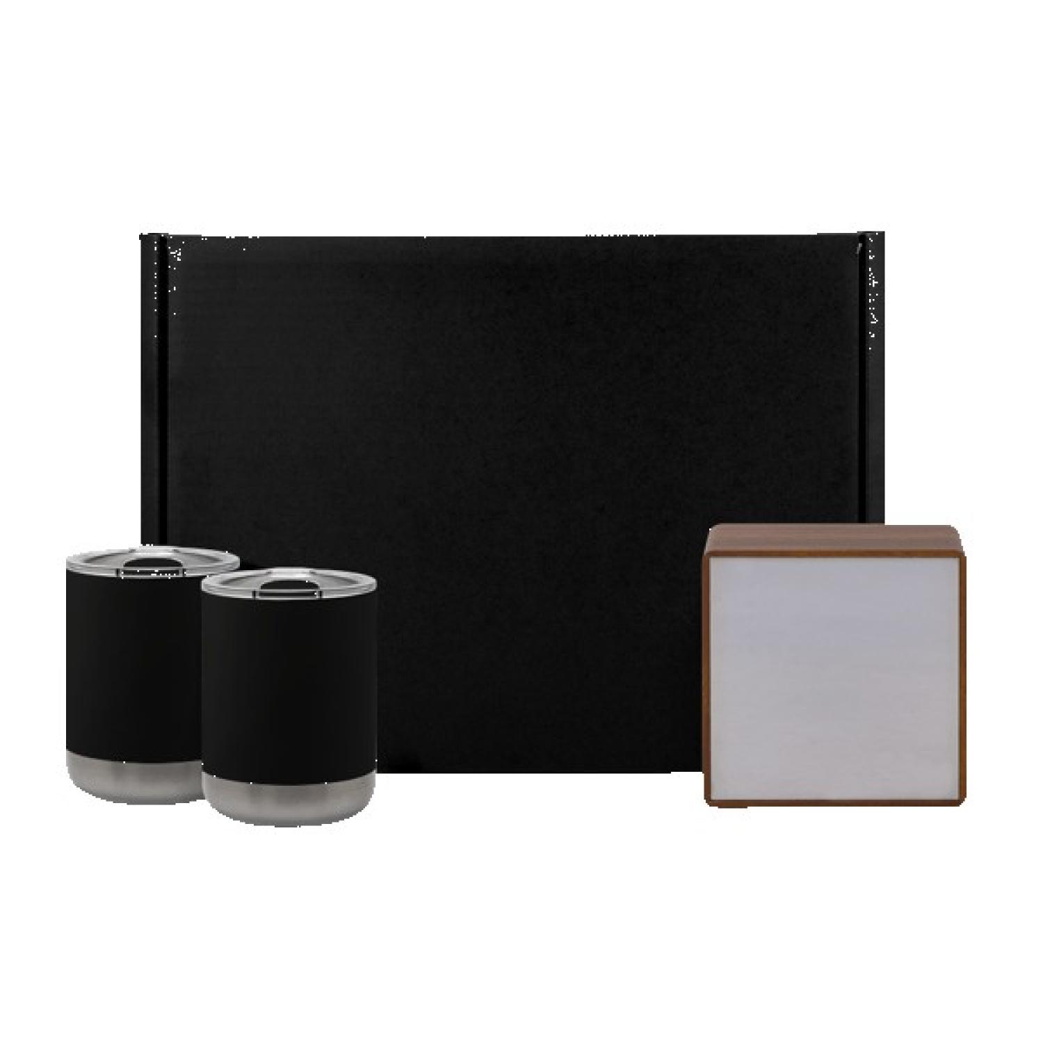 The Siptune Giftset II makes gifting easy with premium drinkware and sleek sound in one custom-wrapped package. It includes two 15 oz stainless steel Basecamp® tumblers with double-wall vacuum insulation, seamless inner walls, and branded slider lids to help keep drinks at the right temp and spills in check. Also included is the ME23208 Bluetooth speaker with a mirrored screen, five RGB light settings, hands-free calling, and up to five hours of playtime on a two-hour charge. Packed in crinkle paper inside a custom gift box with a roll-end tuck-front closure and a full-color 8″ x 5.5″ label, this set delivers style, function, and a memorable unboxing experience.