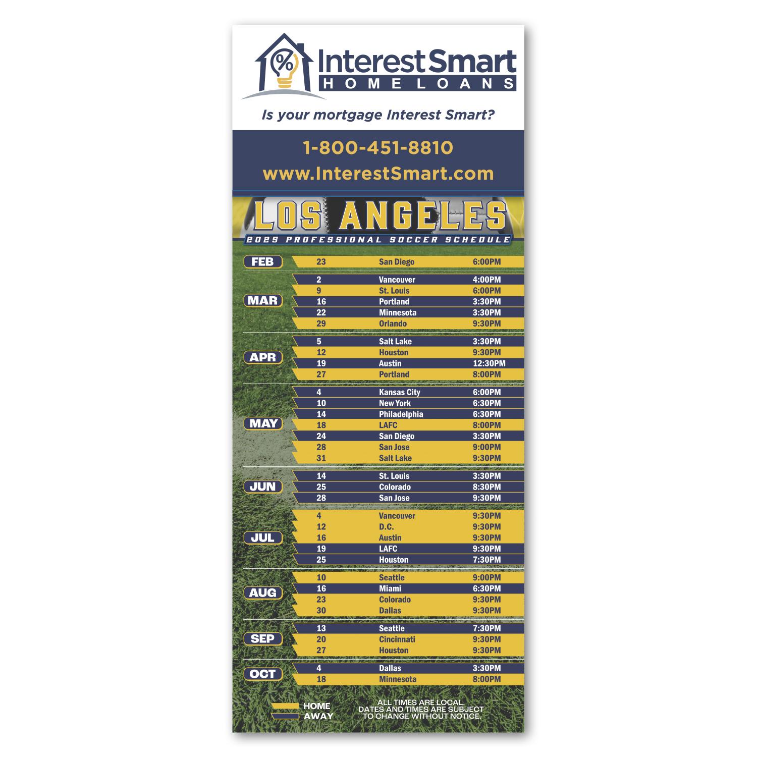 Sports are a big part of any community. By adding your name and logo to a 3-1/2 x 8-1/2 soccer-themed schedule magnet, you can show your support for local teams! Always in stock with an approximate 0.020 material thickness, these customizable marketing tools are available with all sport team schedules. When ordering, be sure to specify which team schedule you want. 3.5″ W x 8.5″ H x 0.01″ D